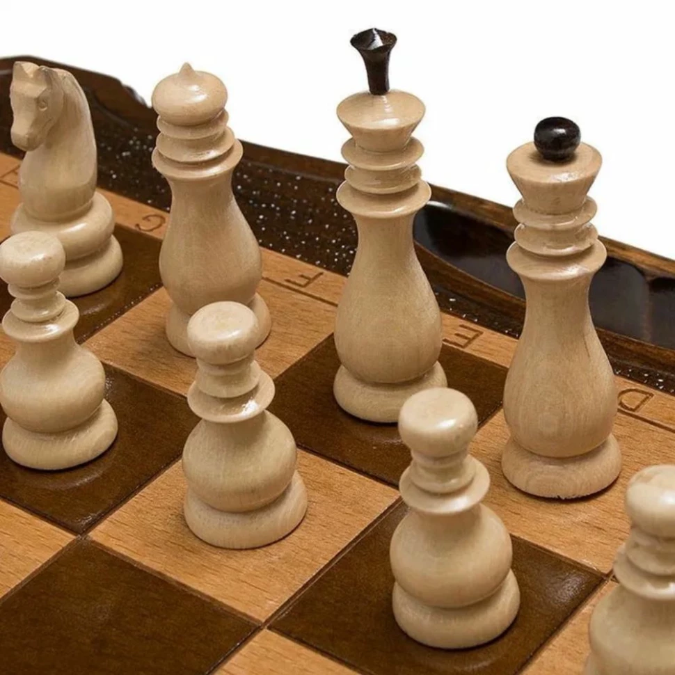 Приобретая данный комплект вы получаете сразу две игры - на внешней стороне находится поле для шахмат, а изнутри - ячейки для нард. Оба варианта появились очень давно и обладают собственной историей. Грани доски выполнены в резном варианте с привлекательными изгибами, а на одной стороне предусмотрена удобная ручка. С ее помощью значительно облегчается транспортировка. Рекомендуется при длительном хранении и перевозки использовать комплектный чехол из мягкой ткани, который обезопасит от вибраций, ударов и грязи.